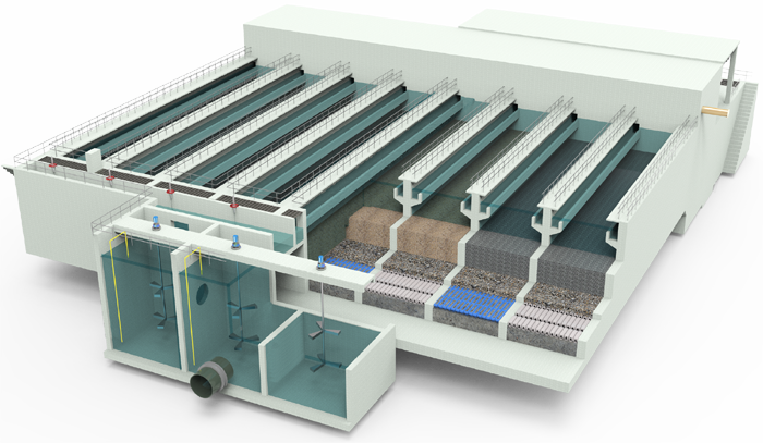 Debed深床反硝化滤池适用形式丰富,涵盖土建、装配式以及一体化等多种形式,被广泛用于新建及改扩建项目的深度处理单元,其高度集约化设计和科学结构分析,最大程度节省资源,使产品适配更多的应用场景,满足客户多样化需求。