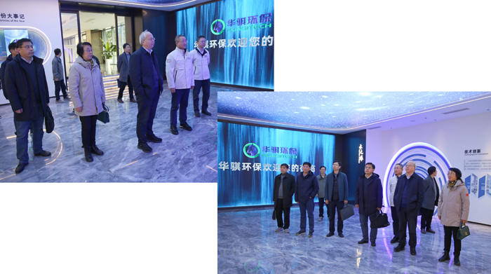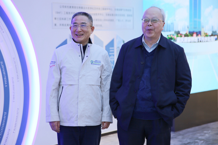 副董事长郑俊陪同俞汉青院士(右)参观展厅
