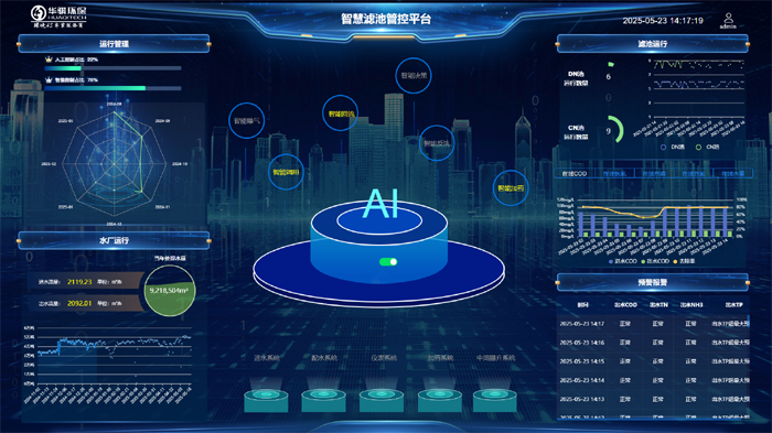 在五河城北水厂,借助智能控制器对曝气生物滤池进行全面的自动改造和提升,迭代了整套标准化的自动化控制软件与滤池智能调用的控制算法,使曝气生物滤池工艺的运行由传统的逻辑控制运行升级为全自动智能运行及边缘侧智慧运行。同时,智能控制器会实时向智慧水务人工智能服务云平台传送滤池工艺运行参数、前后馈数据及设备的运行状态,当滤池运行负载发生异常波动或与人工智能模型预测反馈不符时,智能控制器能够通过通讯控制接口接受云端智能模型的参数调整指令,从而实现边缘计算与云计算的有效联动。