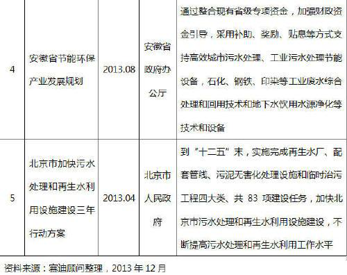 根据住房和城乡建设部信息,2013年三季度,全国城镇污水处理厂累计削减化学需氧量(COD)总量275.4万吨,同比增长6.0%;平均削减COD浓度达到235.0mg/L,同比下降0.7%。上述信息表明,针对化学需氧量和氨氮等常规污染物处理的污水处理设施发展空间变小。