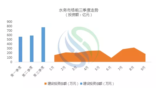 2019年前三季度整个水务市场情况,总规模达1930亿元。总体来说前三季度水务项目势头强劲,尤其8月份,总规模超过了300亿元,前三季度30亿元的项目达10个。