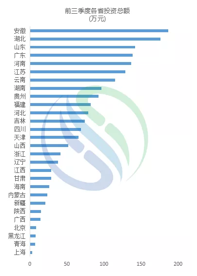 从全国范围来看,胡焕庸线的右侧的水务市场欣欣向荣,投资额排名靠前的省份多为胡焕庸线右侧的省份。安徽、湖北、山东、广东、河南、江苏、云南,这7个省份的投资额已经超过100亿元,长江大保护为长江沿岸各省份水务市场打开了一扇窗,安徽、湖北相继出现多个大的水务项目,这两个省份的投资额分别为186亿元和176亿元。
