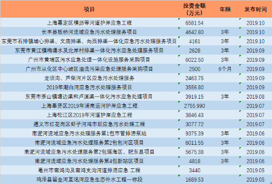 在去年底至今年初,以广东、江苏等地为代表的水环境EPC项目就密集进入了行业的视野(相关阅读:【818】最近火热的水环境EPC项目,想说爱你不容易)。而即使是流程较短的EPC,对于工程时间以及地方政府财力也有着较高要求。随着时间继续过去,更多的应急治理项目开始出现。