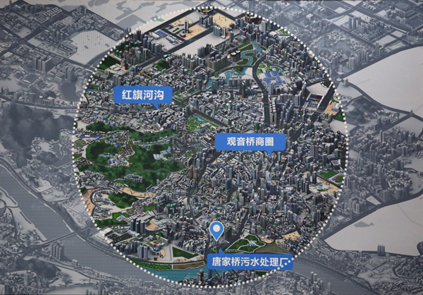 占地58.5亩,服务面积5平方公里,服务人口20万人,主要收集、处理江北观音桥、华新街等区域城市生活污水。