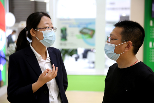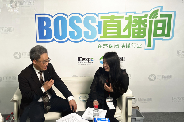 总裁郑杰(左)在“中国环博会Boss直播间”接受采访