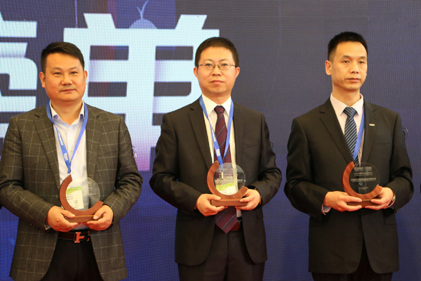 副总裁连宏伟(中)代表公司领取“环博会百强企业”奖杯