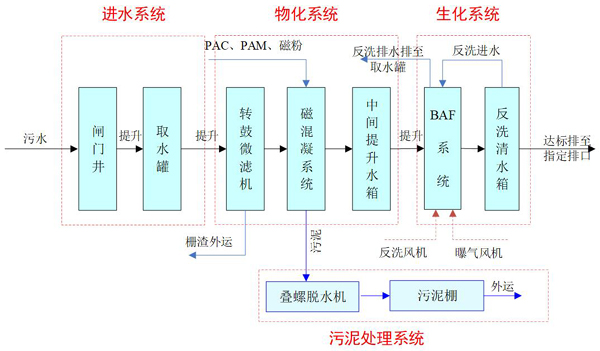 ”的主体工艺处理截流污水。站区内的进水接自淮泗河两侧的闸门井,出水通过清水渠流入淮泗河。