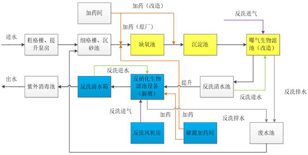 仁寿县城市生活污水处理厂改造提升工程日平均处理污水量为2.0万立方米。厂区主体工艺采用“缺氧池、沉淀池+BAF曝气生物滤池”处理工艺,经处理后的污水水质排放标准为《城镇污水处理厂污染物排放标准》(GB18918-2002)一级A排放标准。改造后采用“缺氧池、沉淀池+BAF曝气生物滤池+反硝化魔方尊”处理工艺。改造后出水指标需满足《四川省岷江、沱江流域水污染排放标准》。
