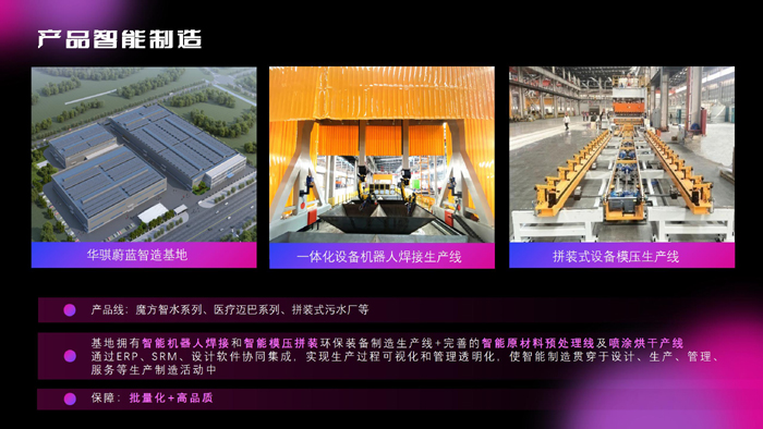 焦点娱乐环保旗下的蔚蓝智能装备制造基地,拥有包括魔方智水系列、拼装式污水厂系列、医疗迈巴系列、精细格栅系列等多条产品线。