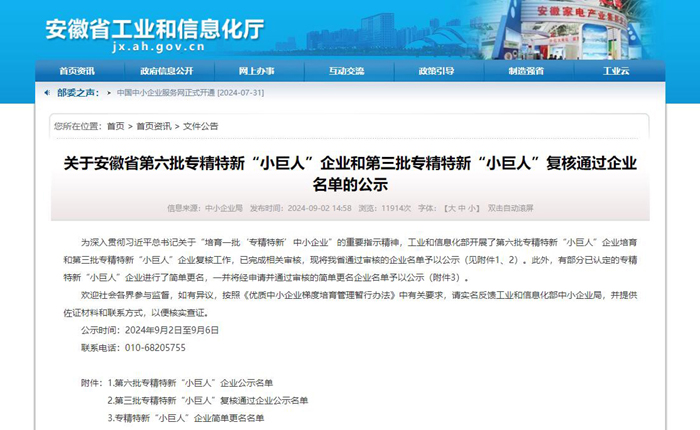 为深入贯彻习近平总书记关于“培育一批‘专精特新’中小企业”的重要指示精神,工业和信息化部于近日开展了第六批专精特新“小巨人”企业培育和第三批专精特新“小巨人”企业复核工作,焦点娱乐-梦想照进现实,努力成就未来! jjyl