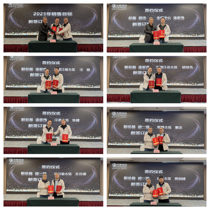 在随后的市场经营及品牌推广工作汇报环节中,市场本部中心、安徽江南大区、安徽江北大区、江浙大区、鄂豫大区、云川渝大区、北方大区、品牌管理部的代表共同总结2024年市场环境及指标完成情况。会议指出,市场部门要以国家“数字化”战略为导向,以“智慧引领未来”为主线,制定行之有效的产品推广计划并予以贯彻执行,是为2025年的重点工作。汇报结束后,市场各大区举行了2025年销售目标签约仪式。