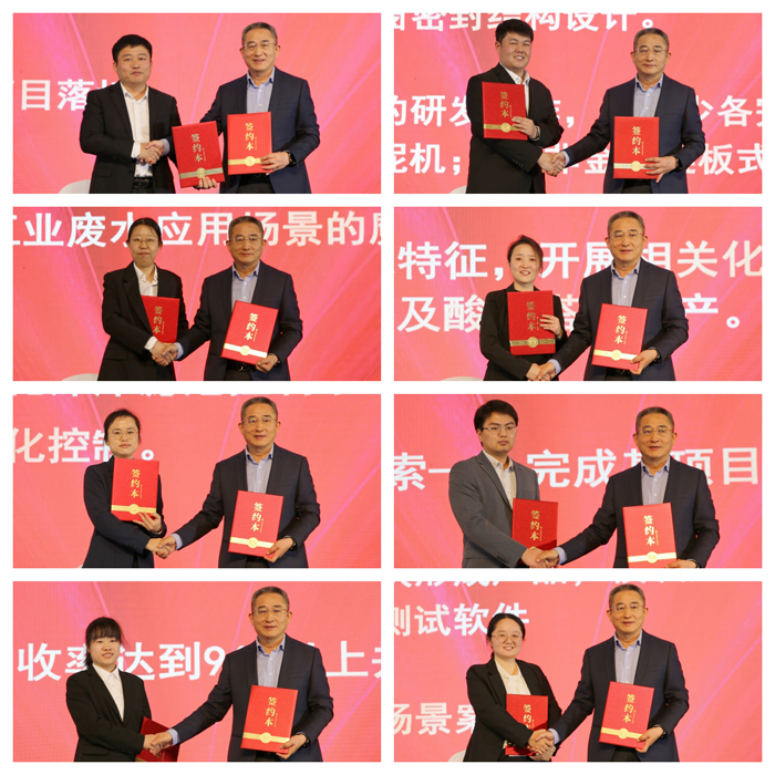 盛典在市经开区管委会副主任方强的致辞中拉开了帷幕,在接下来的产品推介会上,来自装配式水厂、深床反硝化滤池系统、高效/磁混凝系统、BAF智慧工艺、臭废气收集及处理系统、工业物联智能控制产品及系统、魔方智水产品、环保非标设备八个团队的产品经理从市场角度出发,分享了各自技术化产品的新功能、新亮点以及产生的效益,并规划了2025年的市场工作、产品应用场景扩展、升级的思路及目标。随后,会议举行了八位产品经理与副董事长郑俊签约及市场销售人员誓师仪式。