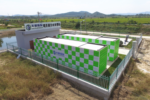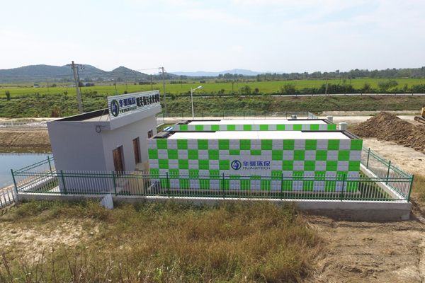 /d,远期(2030年)规模为500m³/d,工程总用地面积1.10亩。其中近期工程占地0.90亩,远期预留0.20亩;生态塘总用地面积约为1.8亩。工程主体工艺设备采用“魔方舟”一体化污水处理设备,主工艺设施土建按近期建设,而配套工辅设施土建按远期建设,设备按近期购置;生态塘按近期规模建设。尾水排放至民兵渠。