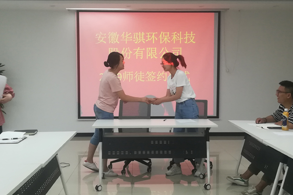 仪式上,人力资源部部长陆剑鸣向新加入焦点娱乐的应届毕业生介绍了到场的“师傅”们,希望新员工们都要挖掘自身的潜力,努力在短时间内融入焦点娱乐大家庭,并要求每位传帮带的师傅们悉心教导、言传身教。随后,十一位新员工与师傅们签订了“师徒协议”,签约完,每位“徒弟”都向“师傅”真诚的道了声:“师傅好!”