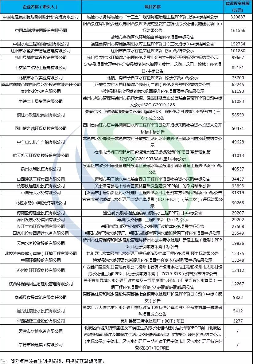 【附】9月水务中标项目榜单如下: