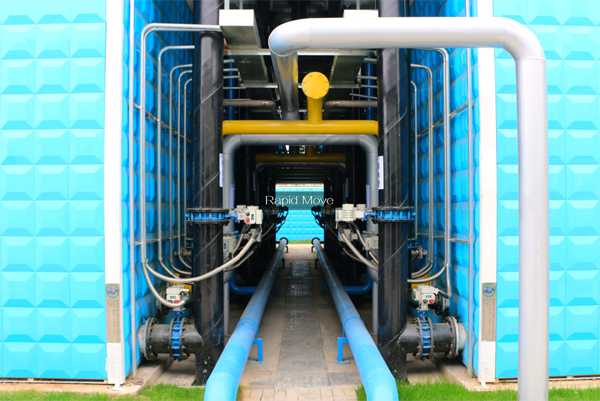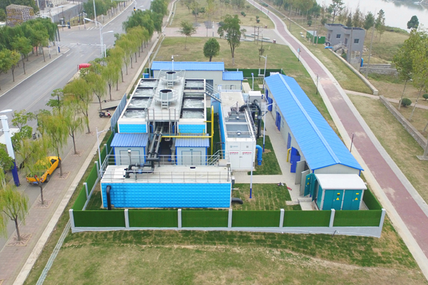 合肥市南淝河流域应急污水处理服务枞阳路泵站工程占地约1053.5m2,设计处理能力5000m³/d,采用我司研发的Rapid-Move黑臭水体旁路处理系统——“魔方磁(磁混凝系统)+魔方尊(BAF系统)”组合工艺产品。进水从幸福路下方自流箱涵末端取水,当水量不足时,从枞阳排涝泵站进水前池泵提取水或滨河路污水管网泵提取水,出水通过管道接入枞阳排涝泵站出水箱涵。
