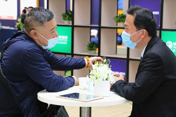 总裁郑杰(左)在“中国环博会Boss直播间”接受采访