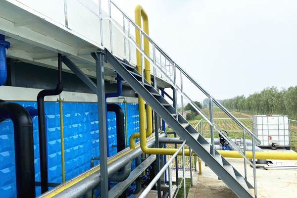 泗阳县经开区淮泗河桂林路水质净化站,位于桂林路与淮泗河交口东南角,轮毂大厦以东,实际占地约833.6㎡,设计处理能力2000m³/d,采用“