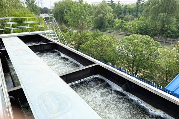 泗阳县经开区葛东河文成路水质净化站,位于文成东路与葛东河路交口东南角,秀达玩具厂以东,实际占地约704.2㎡,设计处理能力2500m³/d,采用磁混凝系统+曝气生物滤池系统的主体工艺处理截流污水。站区内的进水接自河道旁的污水井,出水通过清水渠流入葛东河。