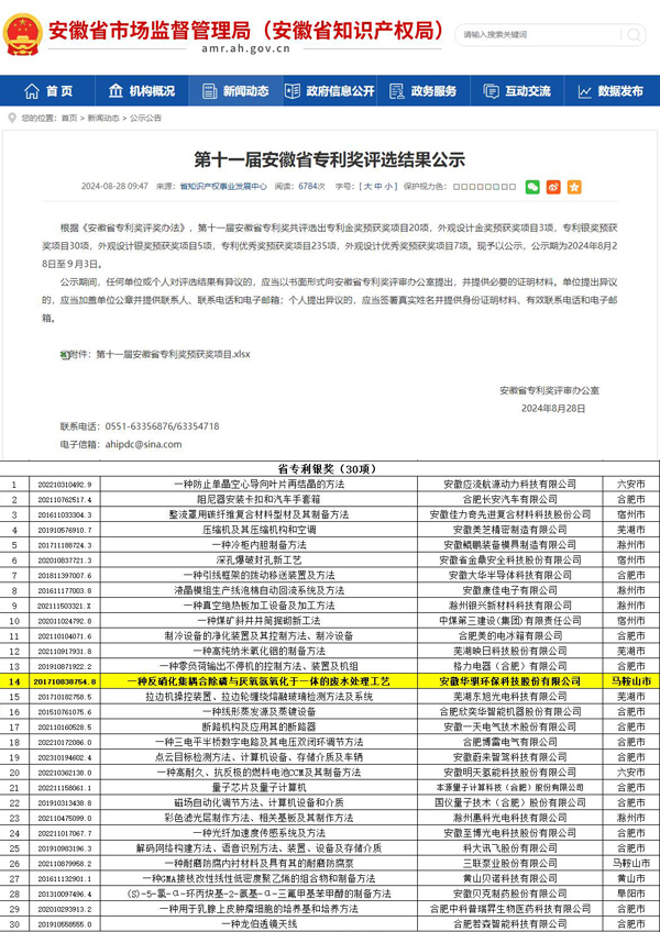 近日,安徽省市场监督管理局(安徽省知识产权局)公示了第十一届安徽省专利奖评选结果。焦点娱乐-梦想照进现实,努力成就未来! jjyl