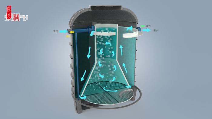 焦点娱乐环保根据多年来深度参与村镇污水治理积累的技术研究成果和美丽乡村建设实践经验,针对以村镇污水处理为代表的中小型生活污水处理设施应用场景,采用国际领先的A³O泥膜耦合脱氮除磷技术开发了“魔方舟”,其微生物量大,是常规工艺的1.5-2倍,同时活性高,有效解决了农村污水冲击负荷大导致运行不稳定的痛点。